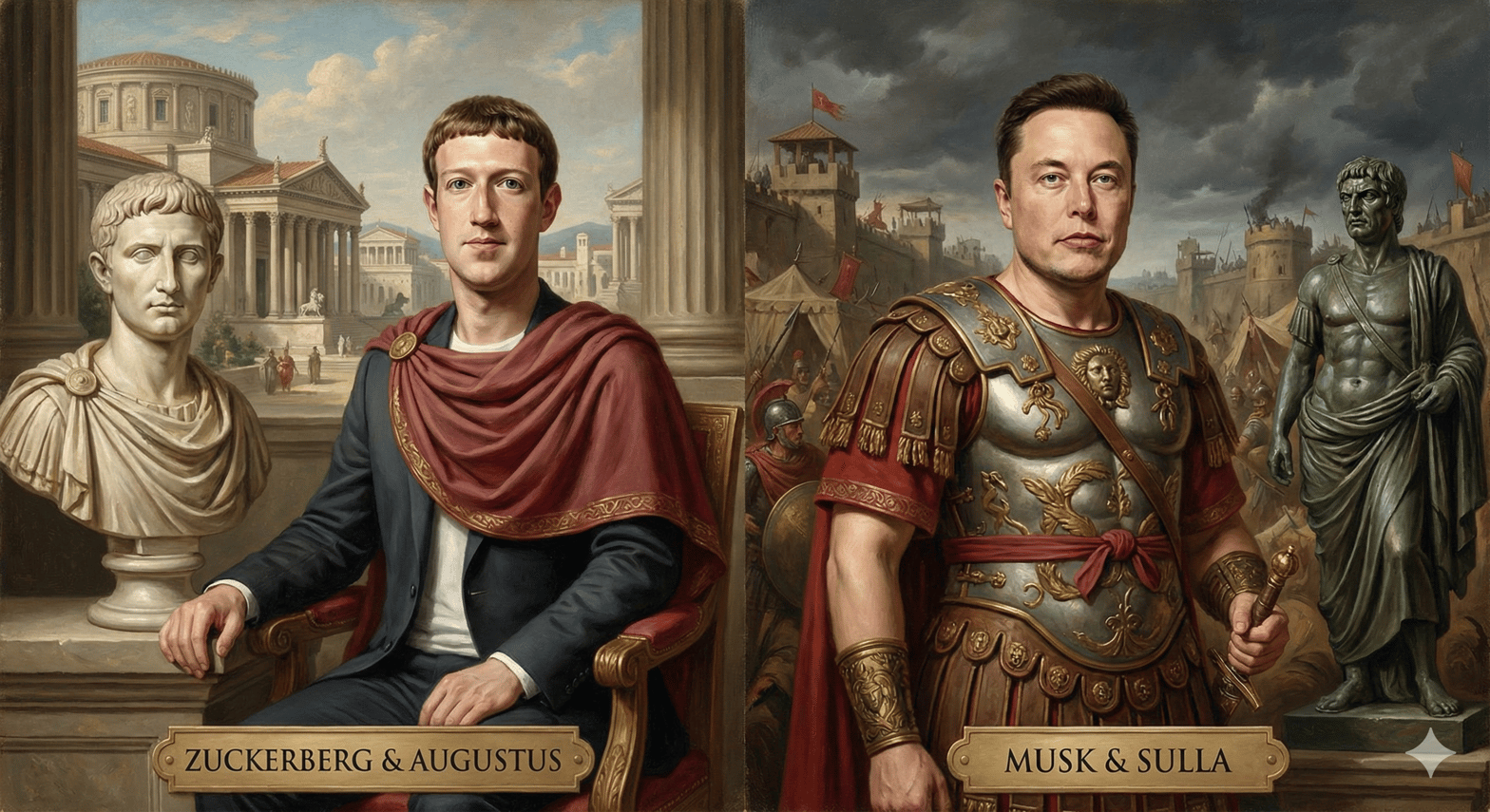 Elon Musk qui rêve de duel dans le Colisée. Zuckerberg en fanboy d’Auguste à Rome. Des investisseurs qui citent Marc Aurèle comme d’autres lisent l’horoscope.