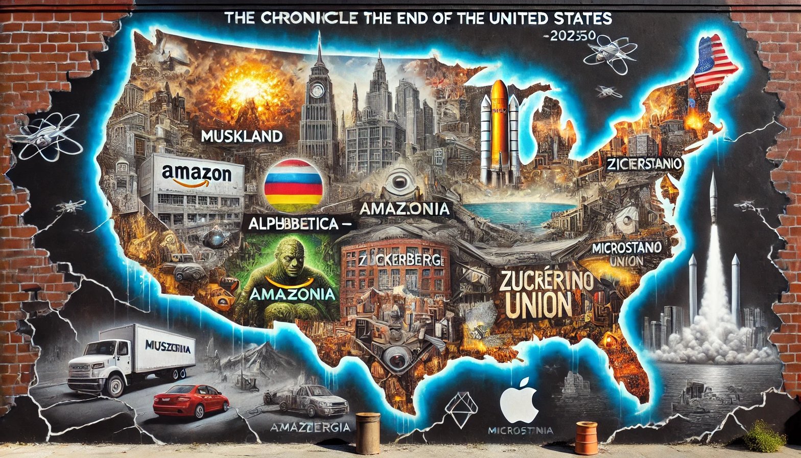 Le président en fonction, William Hastings, tenta de réagir mais dépourvu des ressources économiques nécessaires, il fut contraint d'accepter la dissolution progressive de l'Union. Le 4 juillet 2050, symboliquement choisi par Musk pour marquer l’acte final, les États-Unis furent officiellement dissous en six entités distinctes : Muskland, Alphabetica, Amazônia, Zuckerbergia, Microstania, et Cupertino Union. Cette fragmentation transforma profondément l'Amérique. Tandis que les entreprises-États affichaient prospérité et innovation, d'autres régions, laissées en marge, entrèrent dans une phase prolongée d'instabilité économique et sociale. L’historienne Anaïs Richardson conclut dans ses mémoires publiées en 2065 : « Nous avions cru libérer le potentiel américain, mais en réalité, nous avions abandonné notre démocratie au nom de la rentabilité immédiate. » ("Chroniques d'un pays perdu", Richardson, 2065).