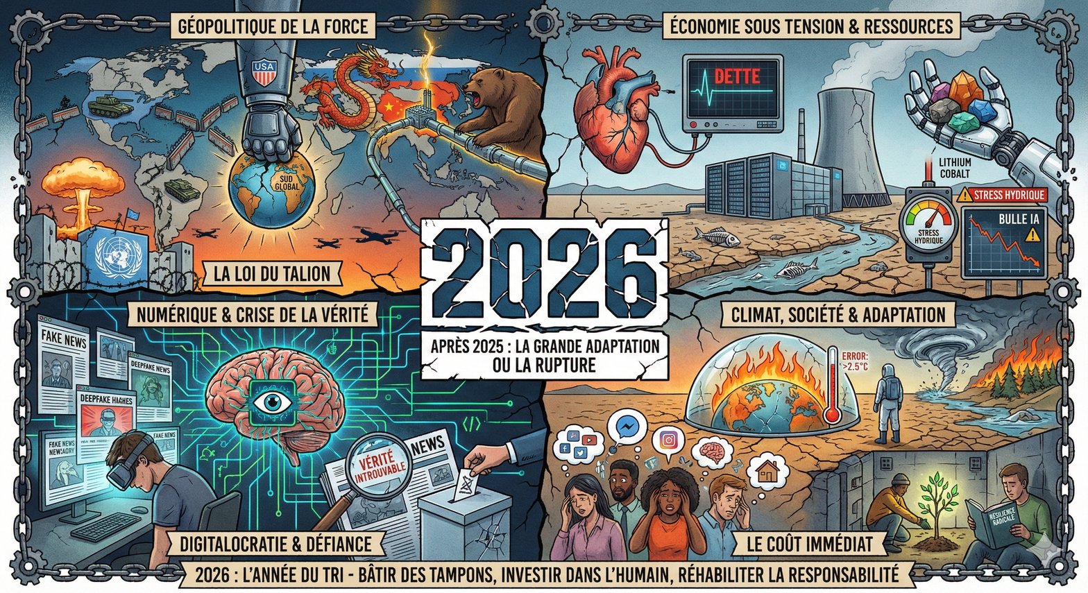 2026 n’est pas automatiquement l’année de la catastrophe. C’est l’année du tri entre ceux qui se contenteront de « gérer » la polycrise en espérant que la prochaine vague sera moins haute et ceux qui accepteront de refondre leurs structures, leurs modèles mentaux, leurs infrastructures, en assumant le coût politique et financier de cette transformation.