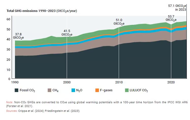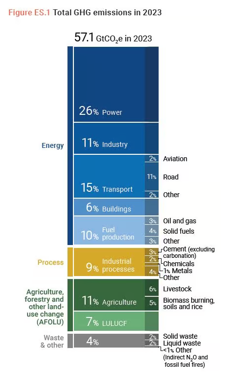En 2023, les émissions mondiales ont atteint un record de 57,1 gigatonnes d'équivalent CO2. Cette tendance est largement alimentée par le secteur de l'énergie qui demeure le principal contributeur, suivi des secteurs des transports, de l'agriculture et de l'industrie. Le secteur de l'aviation a enregistré une hausse de 19,5 % par rapport à 2022, suite à la reprise du transport aérien post-COVID. Ces chiffres mettent en lumière l'inefficacité des politiques climatiques actuelles malgré les engagements de nombreux États.
