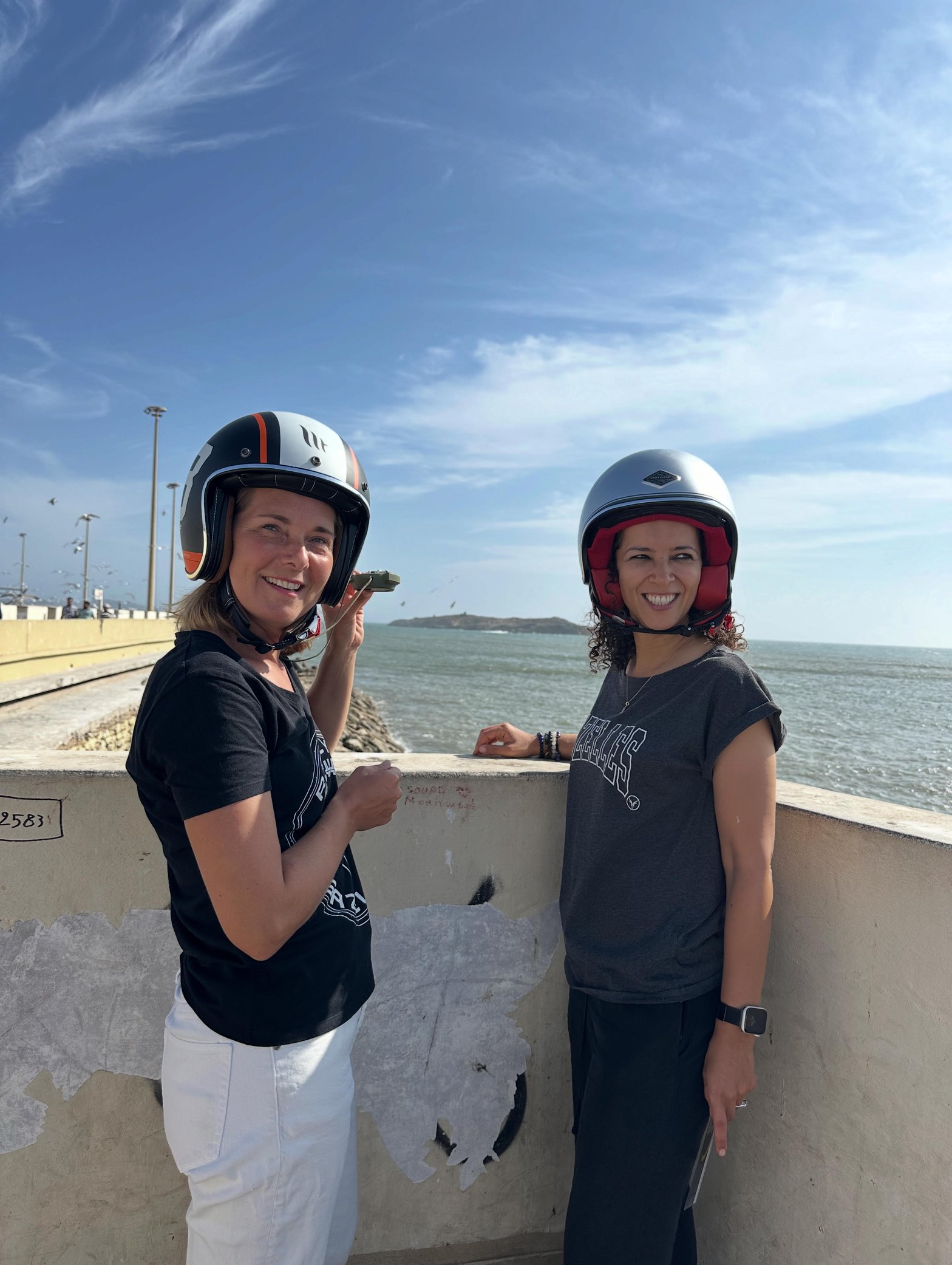 La préparation continue. En fin d’année, nous avons fédéré autour du projet. Yasmina et moi vivons toutes les deux à Essaouira, notre ville de cœur, qui est aussi la ville d’arrivée du rallye. Fédérer localement était donc une évidence. Nous avons commencé par rassembler les anciennes participantes : les gazelles pour échanger librement sur les enjeux, la préparation et la recherche de fonds.